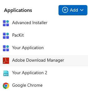 - Add from disk – pick a package from your local drive (eg. .msix, .msi, .exe, .msixbundle, or ps1)