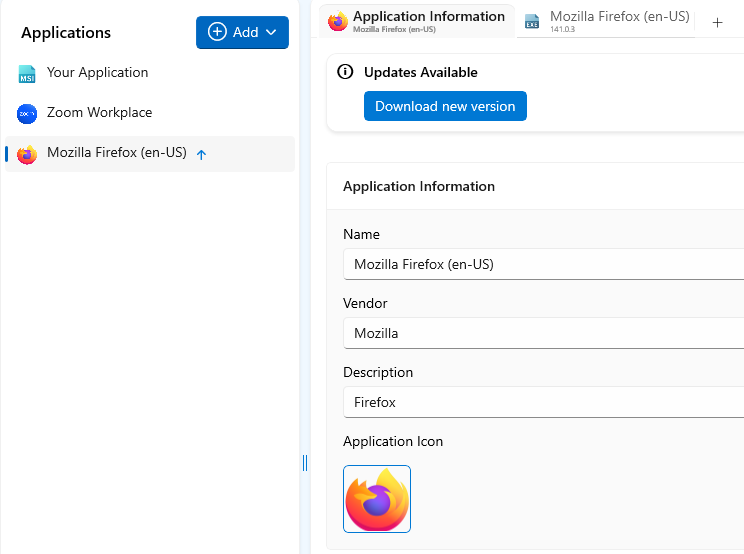 PacKit automatically manages WinGet catalog package updates, offering notifications and a built-in mechanism for updating the Applications added to your workspace from WinGet catalog.